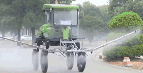 消毒机器人通过遥控操作,可随时调整喷杆、车速,学校、街道、小区等多个场景都可进行作业。