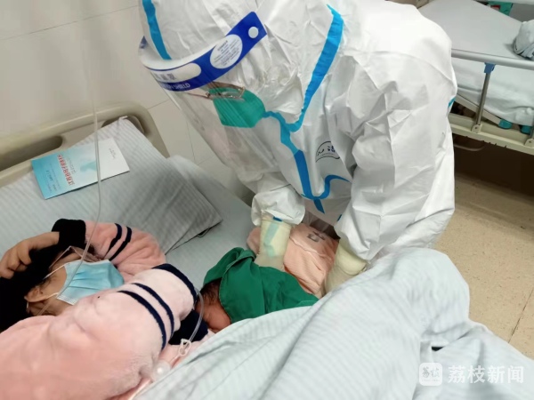 来自封控区怀孕40+6周的石女士于3月18日被转至区集中医疗救治中心待产,考虑到疫情防控期间,“准妈妈”石女士难免会紧张和焦虑,易以萍护士长就一直贴心地开导她,帮她缓解紧张的情绪。20日中午石女士羊水破裂,由于羊水浑浊,胎儿存在窒息风险,为保证产妇和胎儿安全,产妇被迅速送进产房。在分娩过程中,梅露、聂翠娣医生及易以萍、徐亚云两位助产士全程陪护,指导产妇正确用力技巧的同时给予产妇精神安慰。在医护人员的通力合作下,21日12时35分,一位女婴顺利出生,3800克,母女平安。产房内顿时一片欢腾,看见女儿的那一刻,石女士热泪盈眶,连声对医护人员说着“谢谢”。