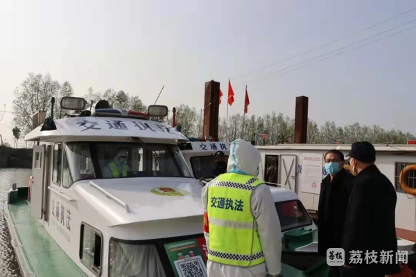 我苏网讯 3月24日下午,盐城市交通运输综合行政执法支队对盐邵线航道市际交界水域疫情查验点进行督查,按照上级各级关于疫情防控的要求,从严从实、落实落细标志标识、宣传提示、喇叭广播、逢船必查、逢人必验、夜间断航等水路疫情防控各项措施,水上执法大队进一步强化“点面结合”举措,严防疫情通过水路传播和扩散,扎牢筑实水路疫情防控铜墙铁壁。