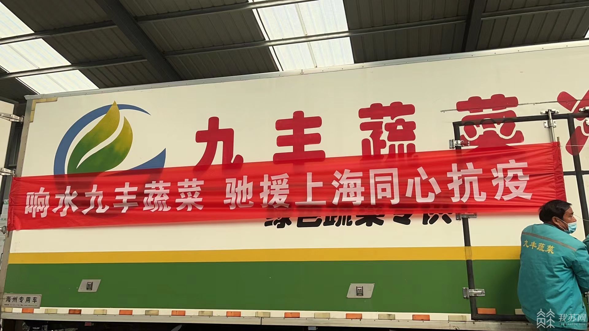 “沪响一家亲,携手共抗疫。”大货车上悬挂的横幅十分醒目。4月2日上午10点,江苏省盐城市响水县大地九丰基地内三辆满载30吨的黄瓜、浅水藕、甘蓝等蔬菜的大货车整装待发。经过消杀后,准备紧急驶往上海,缓解当地蔬菜供应难题。据该县农业农村局市场科负责人陈立军介绍,近期响水还会有大葱、紫甘蓝、西红柿等大批蔬菜发往上海。