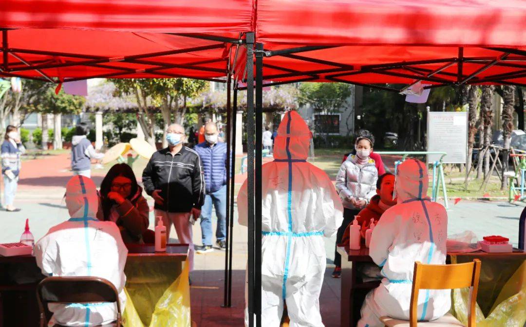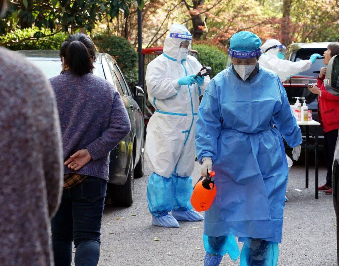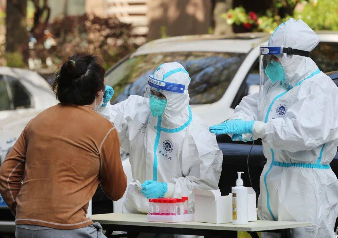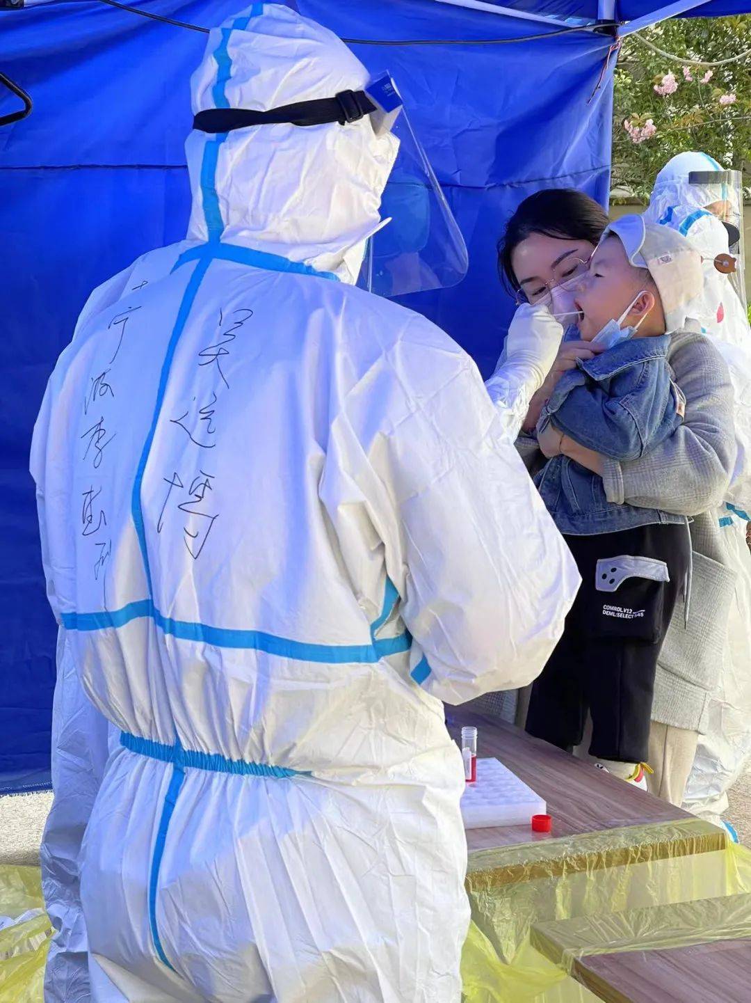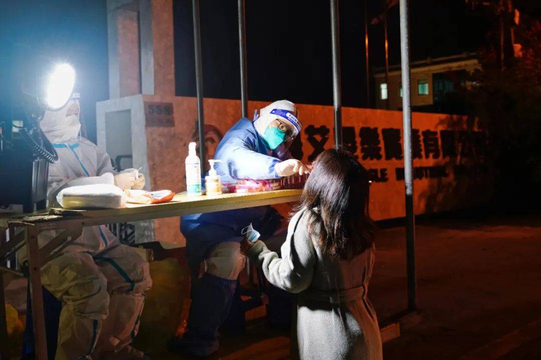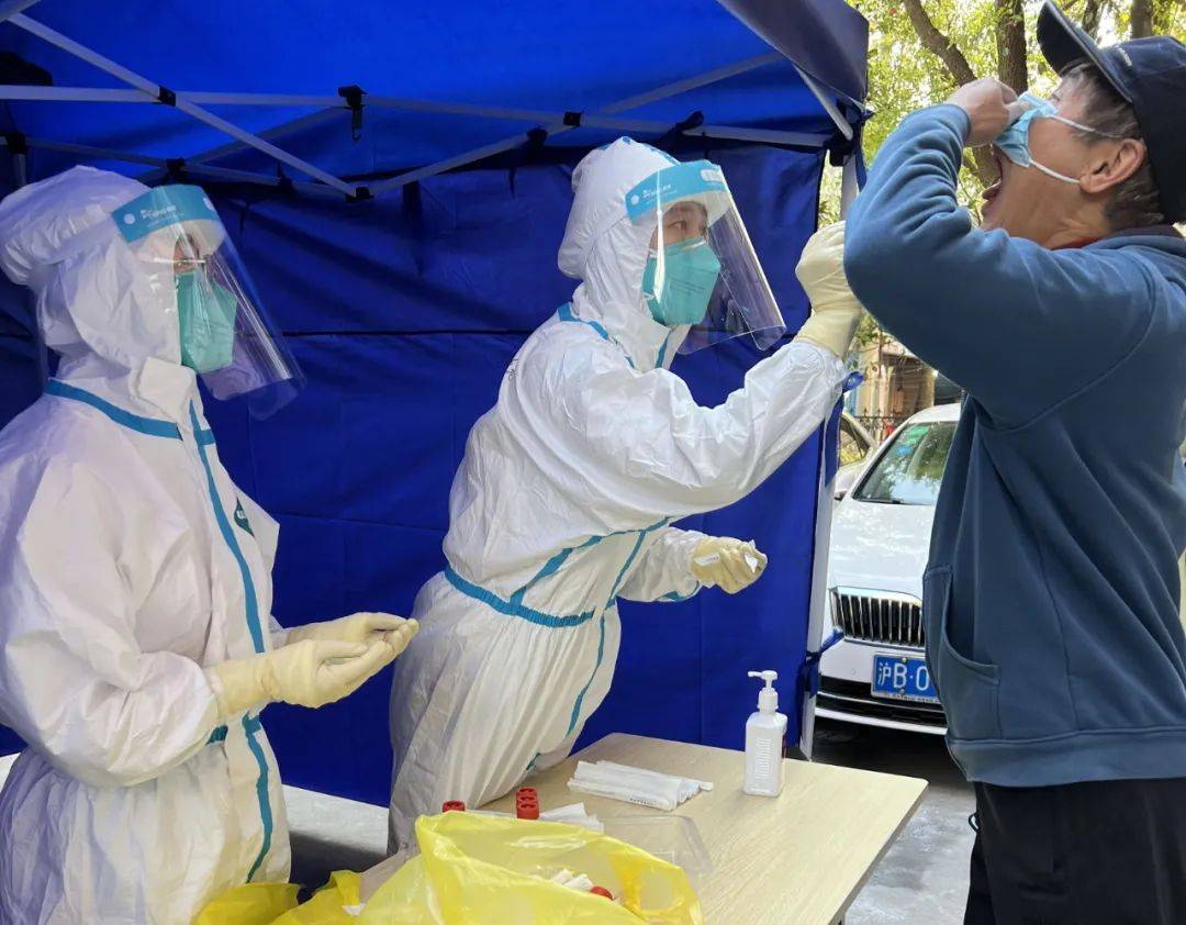 小区今日采取了新的采样方式 ,“居民不动医护动”,在每个楼栋门口进行采样,避免聚集,交叉感染。新华社记者 刘颖 摄