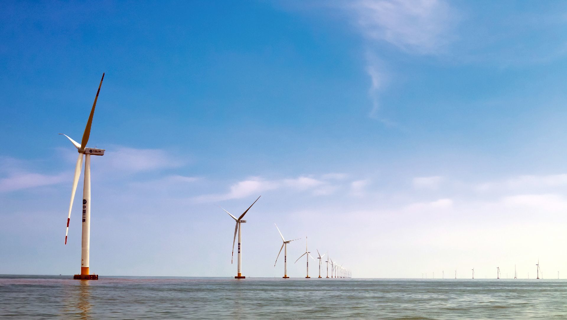 位于盐城市竹根沙海域,国华东台五期海上风电场,海风过处,叶片转动,源源不竭的电流通过海底电缆汇流至升压站,接入电网后点亮万家灯火。作为我国首个中外合资海上风电项目,国华东台四期、五期总装机容量50万千瓦,去年11月建成并网发电,预计年发电量13.9亿千瓦时,相当于节省标煤44.19万吨,减排二氧化碳93.75万吨、二氧化硫1704吨。