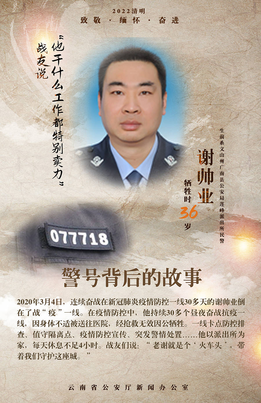 生前系文山州广南县公安局莲峰派出所民警