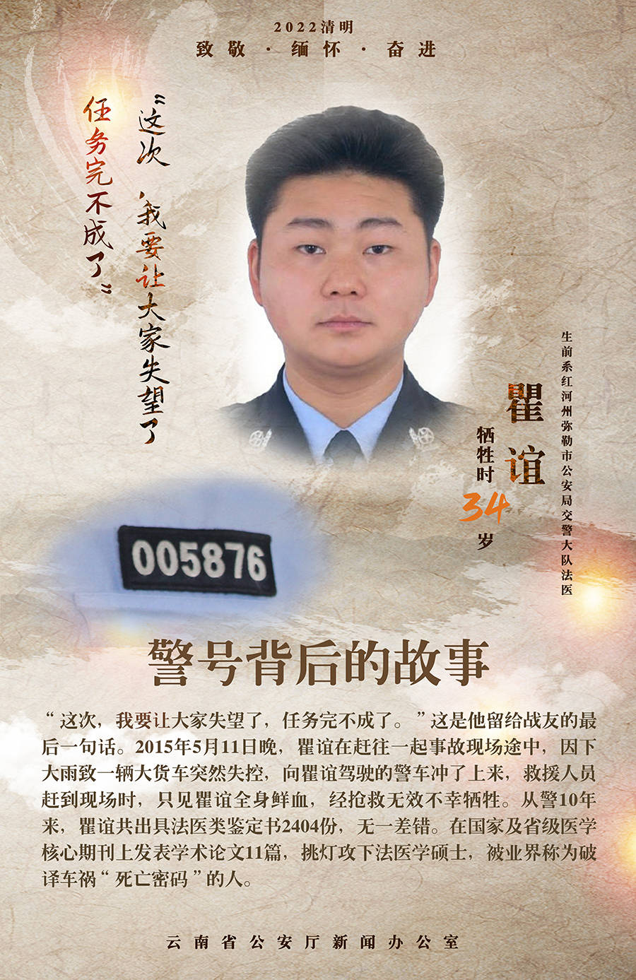 生前系楚雄州楚雄市公安局民警