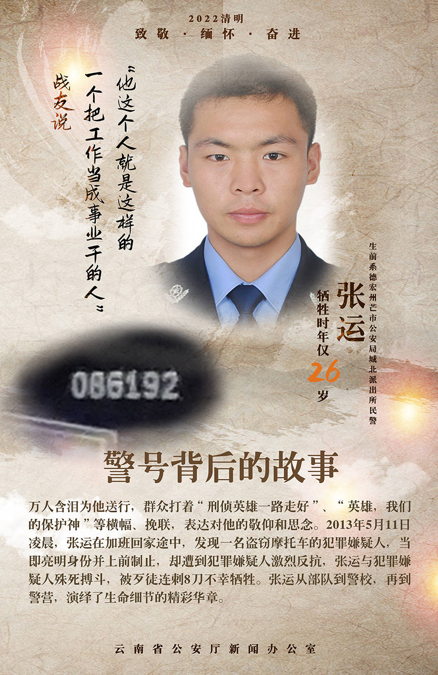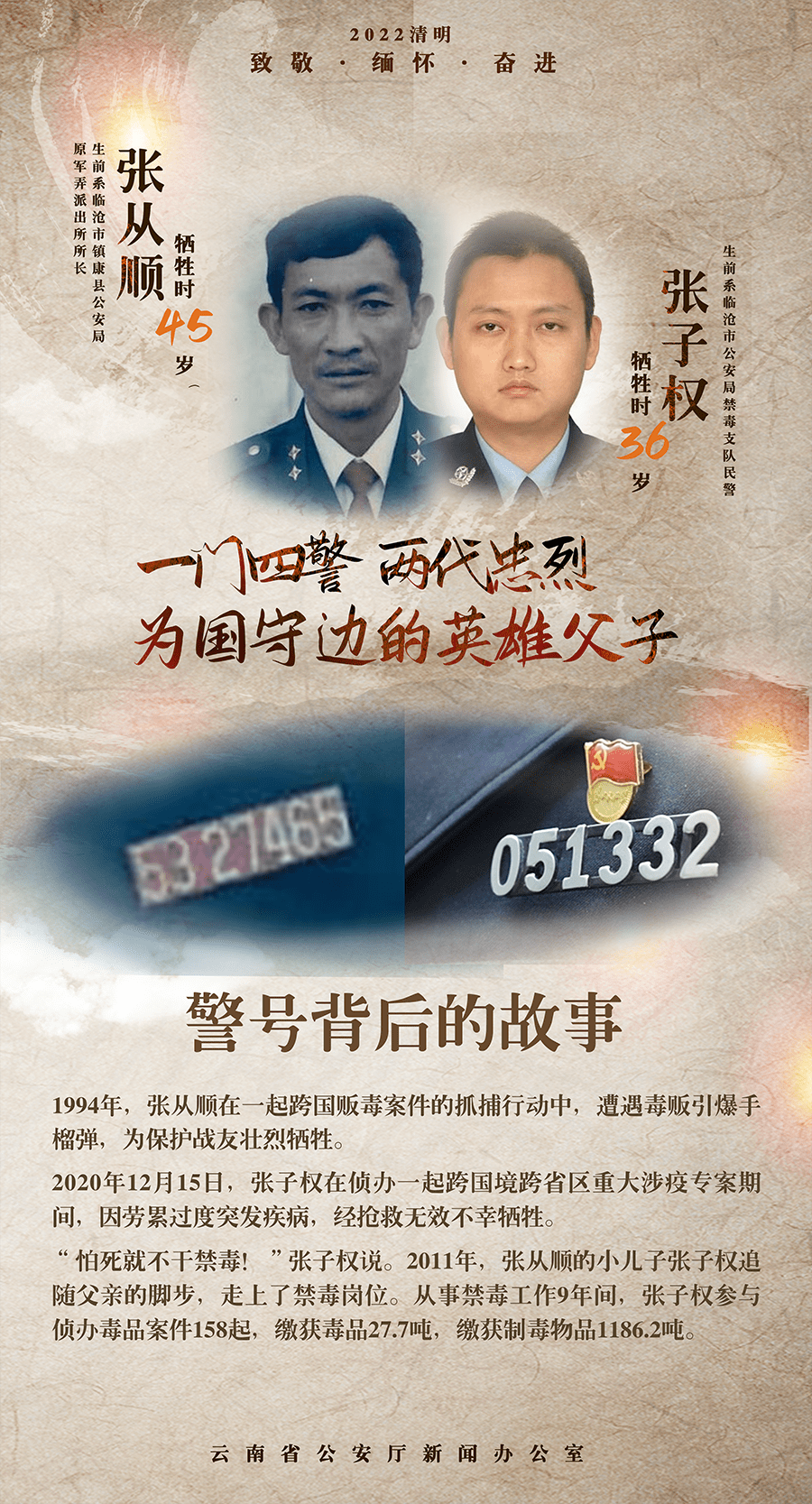 又是一年清明节,让我们循着这些警号,揭开曾发生在它们背后的英雄故事,一起追忆它们的主人。
