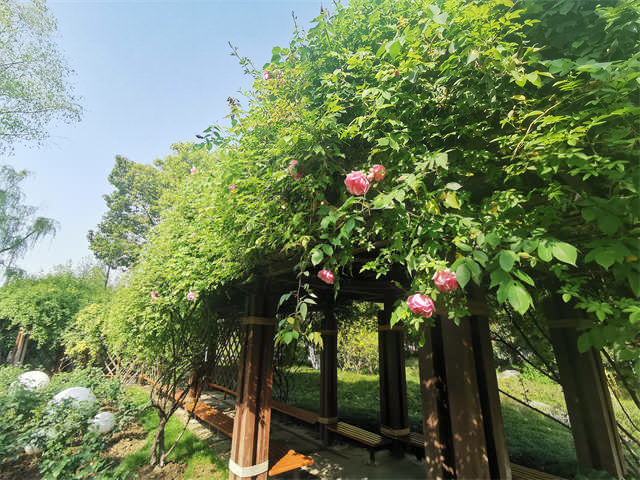 据悉,目前两个长廊共栽植各类古老月季700余株。