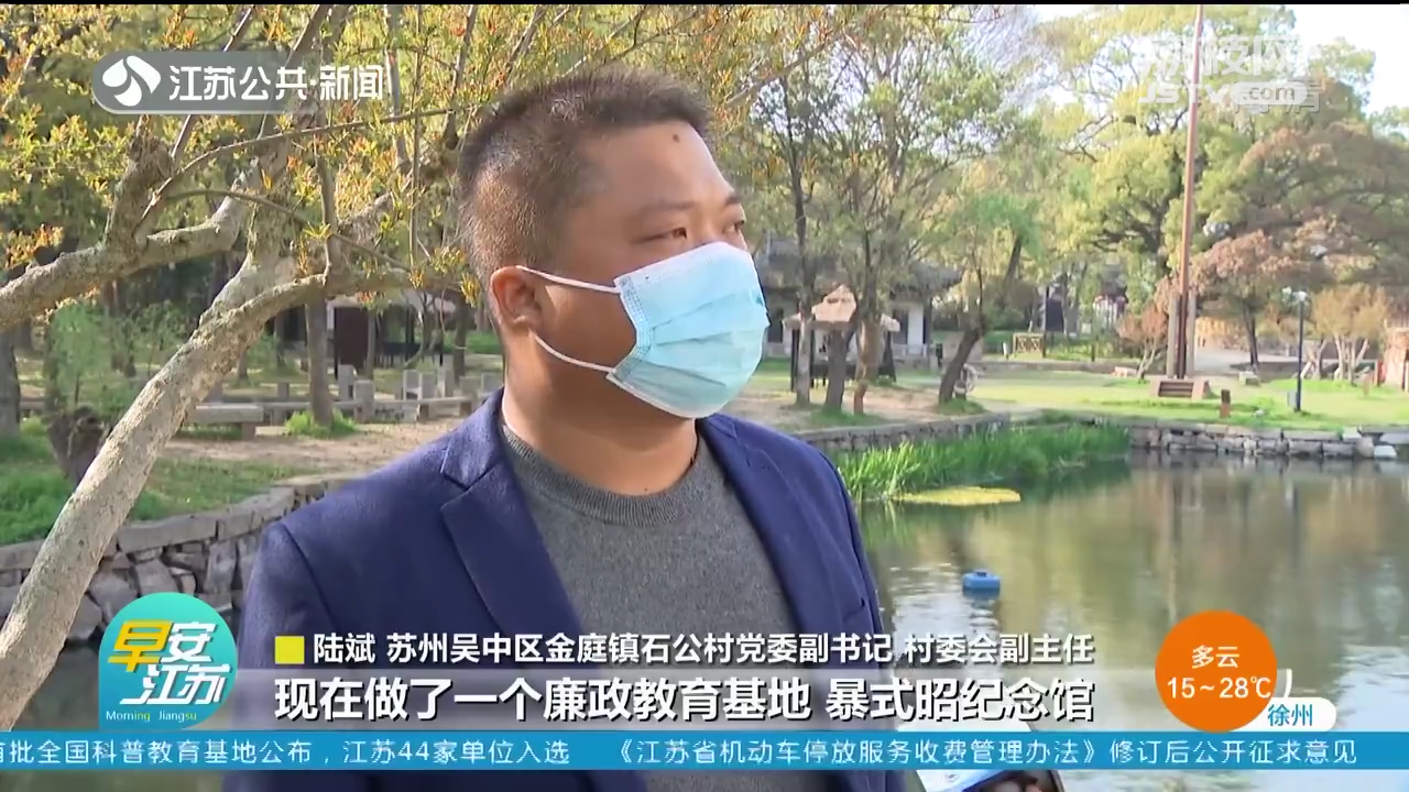 苏州吴中区金庭镇石公村党委副书记、村委会副主任陆斌说:“后面的邓氏祠堂我们修复之后,现在做了一个廉政教育基地,暴式昭纪念馆。 然后对黄氏祠堂、秦家祠堂、敦伦堂、瞻瑞堂等进行了修复。我们保护的话不单单靠村里,也不单单靠政府,老百姓也积极参与了,比如说我们现在老百姓要修复一些什么东西的话,我们有一个‘讲和修睦’工作室的,我们这边的风俗就是喝讲茶,我们在‘讲和修睦’工作室里面就讨论一下,怎么修复怎么弄。”