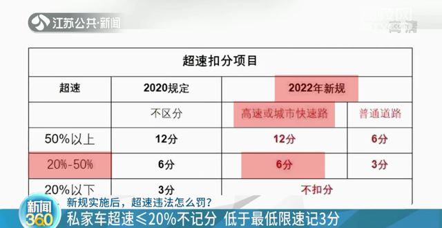 【私家车超速≤20%不记分 低于最低限速记3分】