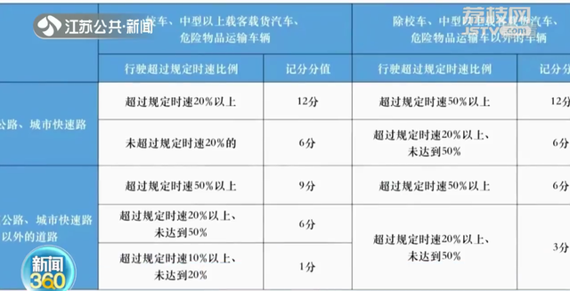 江苏交警介绍,根据4月1日实施的新规,确定一起超速违法行为如何记分,要考虑三个因素,分别是:车辆类型、道路类型、超过规定时速的比例。