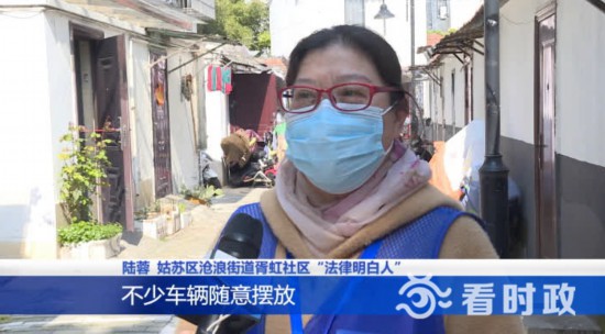 姑苏区沧浪街道胥虹社区“法律明白人”陆蓉介绍,以前不少车辆随意摆放,影响了小区环境。她及时向社区反映,社区立即组织党员志愿者进行重新粉刷,并对居民进行普法,培养大家有序停车的习惯。