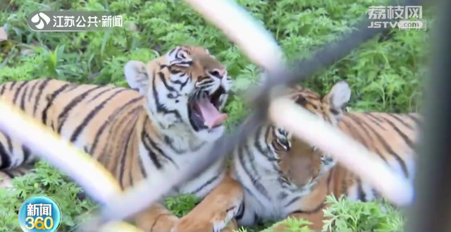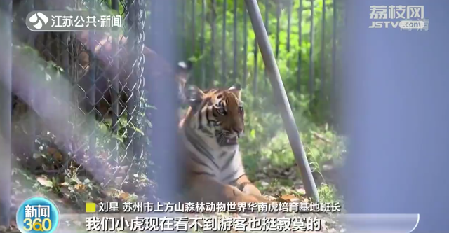 苏州市上方山森林动物世界华南虎培育基地班长刘星说:“我们隔壁的那一只老虎,年龄也比较大了,十几岁了,但是跟我们这4只小虎相处还是非常融洽的,经常打打招呼,然后一起互动一下。”