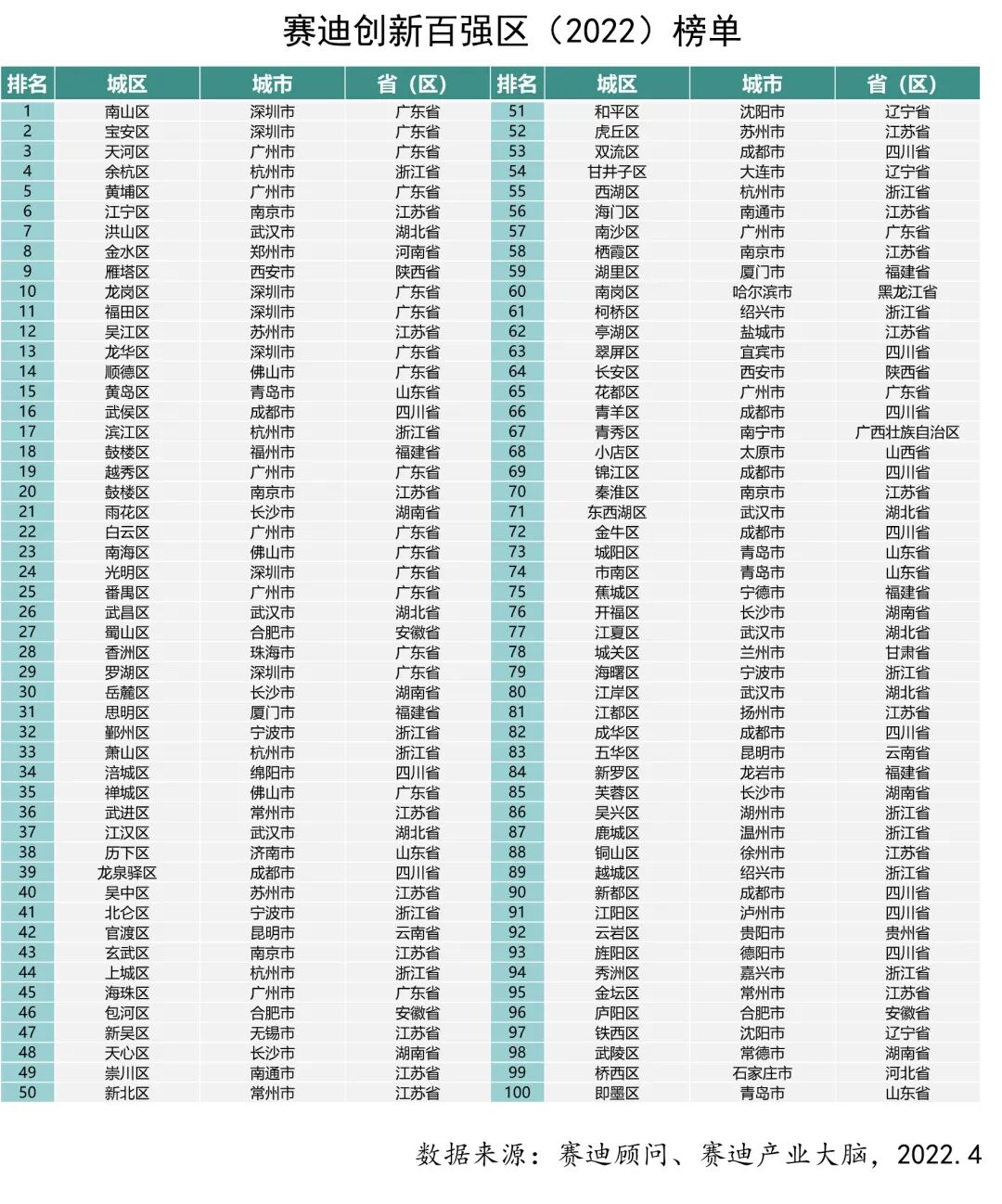 重磅发布了“赛迪创新百强区”(2022)