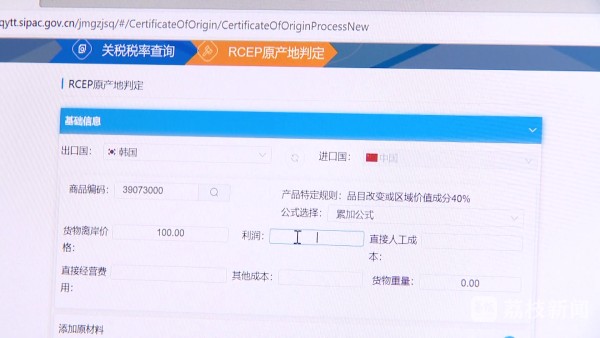 苏州生益科技有限公司物流部经理权天明说,原先的话我们要去查各种资料,查各种税则的标准,然后才能得出来。准不准心里也是没底的。经贸规则计算器可以很清晰地帮助我们知道这个货物是不是符合RCEP的一些协定税率,可以使我们选择最优的税率,节省税款,基本上就是几十秒之内就可以得出结果。