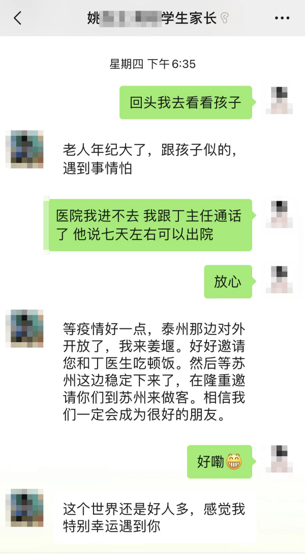 经了解,姚先生的儿子在李楠岚所在辖区的某学校就读,母亲徐老太在姜堰租房陪读。当天下午,徐老太突发脑梗,被邻居发现后送往医院治疗。而姚先生人在苏州,无法来姜堰照料母亲。因担心母亲的身体状况,姚先生只能向民警求助,请李楠岚帮忙联系主治医生。