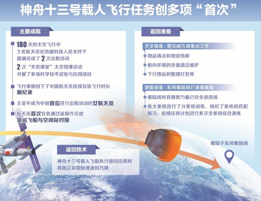 进行两次出舱活动、开展多项科学实验……6个月的在轨生活转瞬即逝,3名航天员工作充实,收获颇丰。