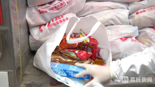 这辆车上,总共有1000袋左右的爱心物资,有方便面、面包、矿泉水,还贴心地为大家准备了牙刷、牙膏还有一次性口罩。来自江苏企业"运满满"的多名志愿者们穿着防护服,领着一袋袋爱心物资,送到货车司机手上。货车司机:“开了7、8个小时,有时候堵车,路上都吃不上饭,谢谢你们辛苦了。”