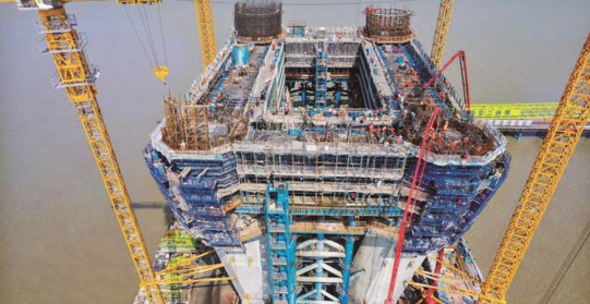 “今年4月4日,南主塔下横梁浇筑顺利完成,此次北主塔横梁浇筑也取得重要突破,浇筑完成之后,我们整个北塔将进入中塔柱的施工阶段。计划今年年底,全部完成整个中塔柱的施工。”中交二航局常泰长江大桥项目经理部党支部书记王尹园介绍。