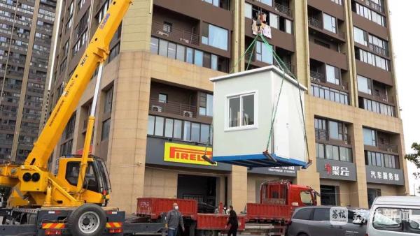 近日,一批封闭式采样驿站,在常熟市东南街道集中投用,用于改善核酸检测采样现场的硬件设施条件,进一步提升疫情防控保障能力。日前,记者来到东湖社区紫晶城核酸检测采样点时,看到工作人员正操作吊机将一间活动板房稳稳安装到预定位置。