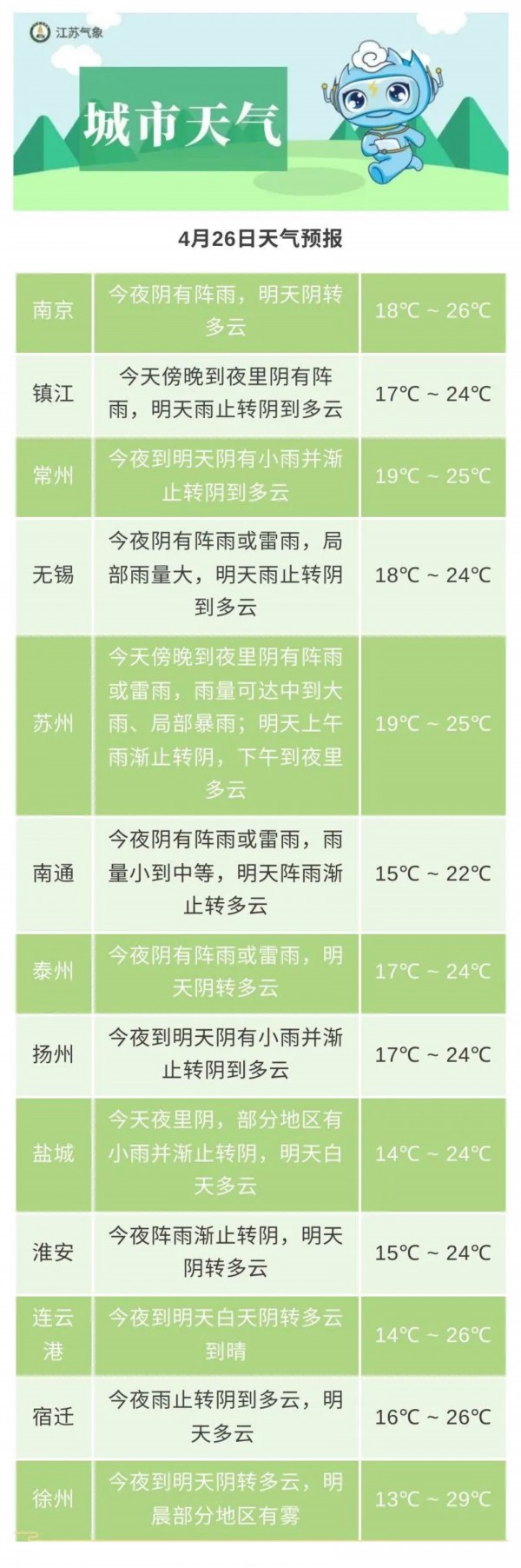 四月的最后一周,江苏气温持续在“春季档”运行,大家的衬衫、卫衣、风衣又可以拿出来了。