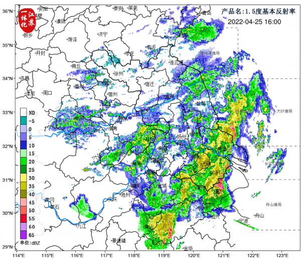 今天是本轮降雨过程的最强时段,下午16时强降水回波,位于我省东南部地区部分地区仍有红色回波。