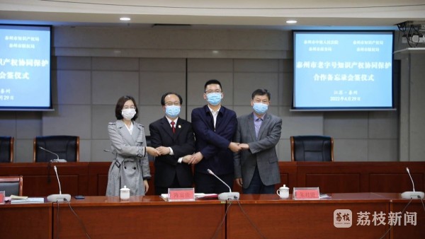 在座谈会上,泰州市中级人民法院、泰州市知识产权局、泰州市商务局、泰州市版权局共同签下了合作备忘录,今后将成立专业的知识产权协同保护团队,为泰州的“老字号”企业提供更精准的服务。