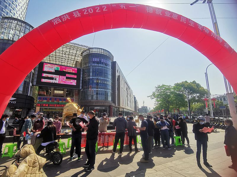 为进一步服务企业用工、优化营商环境,扶持返乡人员、就业困难人员等实现就业,5月3日,泗洪县举办2022年“五一”稳就业惠民生专场招聘会。