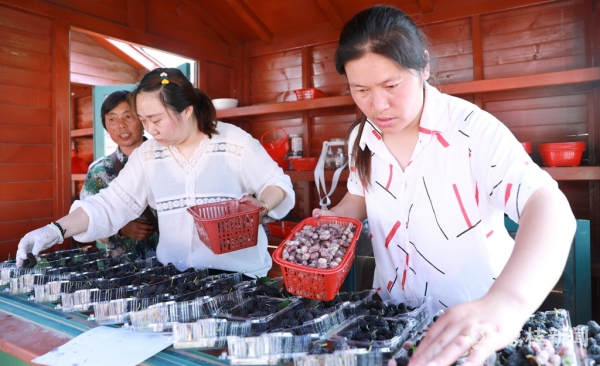 任潘告诉记者,自己种植桑葚已经有7年多了,以前品种比较单一,客户吃多了就腻了,效益是一年不如一年。现在在村里的帮助下,这几年自家果园引进了一些新品种,来买的新客户多了,效益也比以前高了很多,现在每年光卖鲜果也能有七、八万的收益。“现在卖得比较好的是长的毛毛虫,还有香金葚,但是我们现在是以黑色大石为主,主推是大石。”