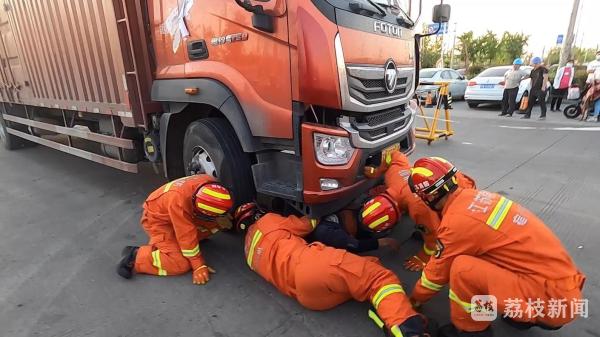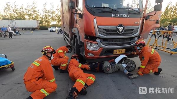 5月6日下午6点多,在宿迁市宿豫区张家港大道与洪泽湖东路交叉口南侧附近的某物流园西门口处发生一起车祸,一辆电动车被卷入大货车车底,一人被困,现场情况十分危急。