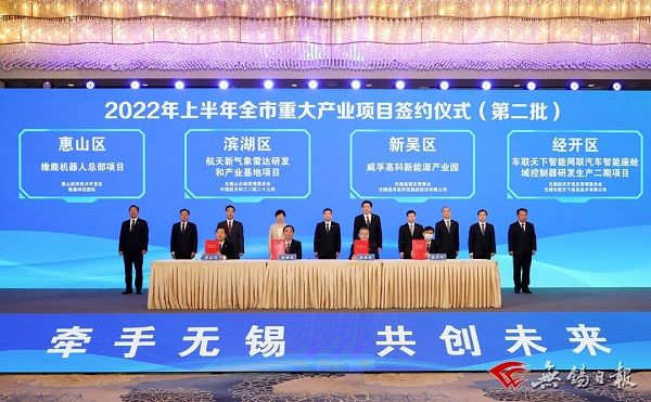 Wuxi in East China's Jiangsu province secured 38 industrial projects worth 93.47 billion yuan ($13.99 billion) at an online signing ceremony held on May 5.