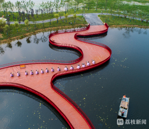 同时,依托这些植物和水环境,泗洪县又在这里配套彩虹桥、亲水平台、健身休闲廊道等设施,并栽种了不同品种的花草树木,进一步提升公园的“颜值”,从最早吸引周边群众休闲健身,到如今逐步成为当地的自驾游、“打卡”胜地。