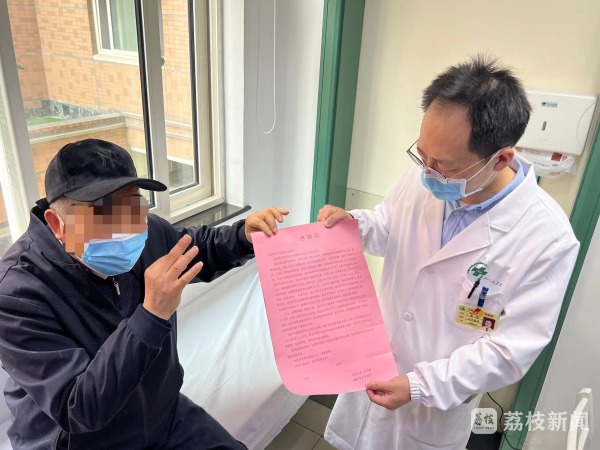 “感谢苏北人民医院,感谢内分泌科的刘彦主任、烧伤整形外科的徐刚主任,还有医院其他的医生和护士,正是有了你们的精心医治和护理,才能让我现在恢复良好,可以走路了。”诊室内举着一封感谢信的许先生对着医生说道。