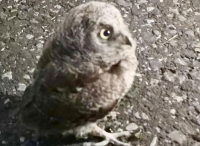 高女士说,从“猫头鹰”的状态来看,它还没有长大,“可能是不小心落在地上,没有力气再飞回到树上了。”