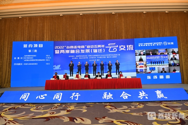 5月10日下午,宿迁市举行2022“台商走电商”启动五周年暨两岸融合发展(宿迁)“云交流”活动。