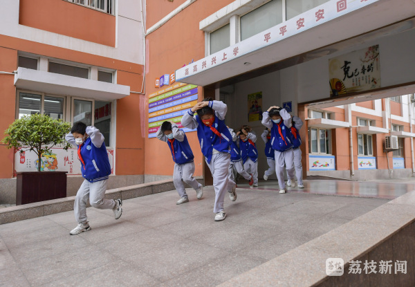 5月11日下午,连云港市海宁小学举办主题为“减轻灾害风险,守护美好家园”的防震减灾演练。