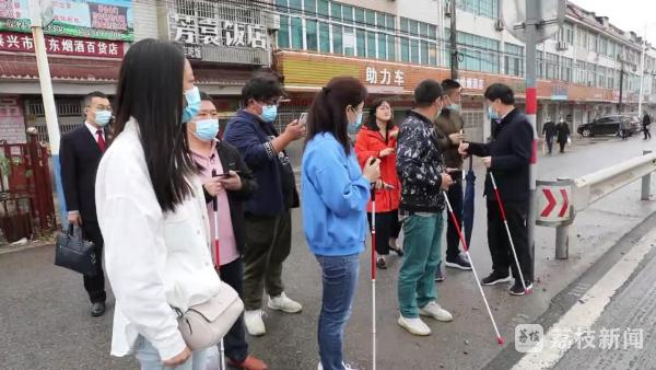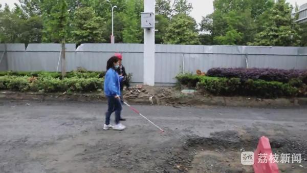 当天上午8点,10名盲人学员无障碍出行考核开始,考核内容是:从苏馨家园出发坐公交车前往指定地点,打卡成功后,再坐公交车返回苏馨家园。