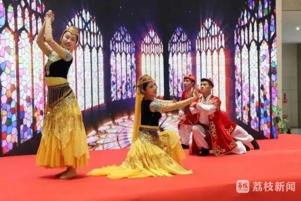 活动现场,专业演员及志愿者向观众表演了舞蹈《掀起你的盖头来》、古乐表演《我和我的祖国》、 朗诵《新疆姑娘的水乡情缘》等节目。