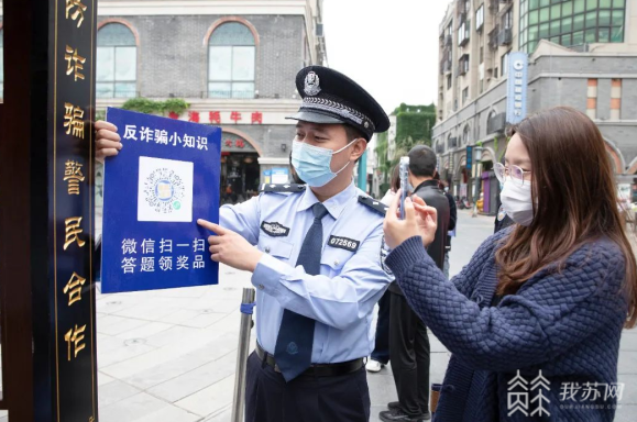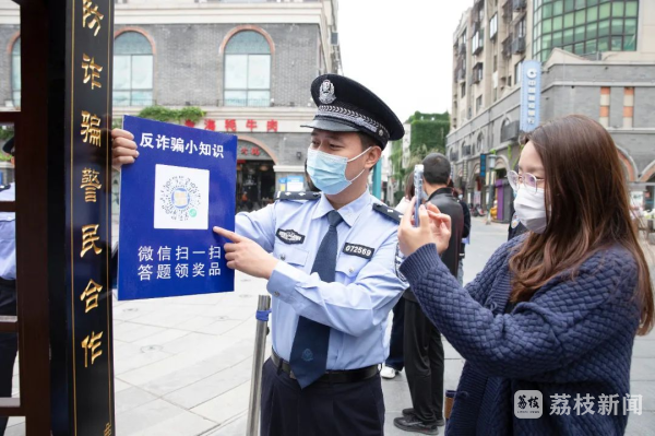 据了解,为确保反诈小常识入脑入心,牵头民警围绕刷单、APP投资理财、期货、裸聊等多发性网诈案件,定期组织警力对老街沿线的商铺、住户、游客进行宣传,提醒广大群众不轻信来历不明的电话、信息,不下载和使用来历不明的APP。同时,为激发大家的学习兴趣、增强反诈辐射效应,还特意定制了印有反诈常识的钥匙扣、警察形象公仔、警车模型等精美奖品,通过扫描二维码答题积分的方式兑换精美礼品。