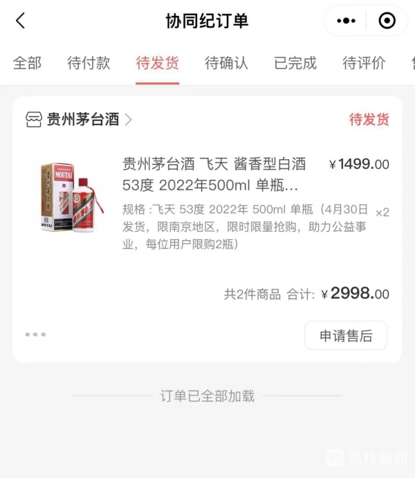收了全款为何不发货?5月17日,记者陪同吕先生找到了位于栖霞区紫东路1号E5栋的这家公司,公司沙先生告诉记者,“协同纪商城”的确是公司所开发的电商平台,日用百货、数码电器等生活用品都有销售。前期,他们和南京一家茅台酒代理商签订了购买合同,订购了几百箱飞天茅台,没想到这款酒在平台上刚一上线,瞬间就吸引了大批“茅粉”,不少人纷纷下单购买,可在订单生成之后,没想到茅台酒代理商却放了他们的“鸽子”。