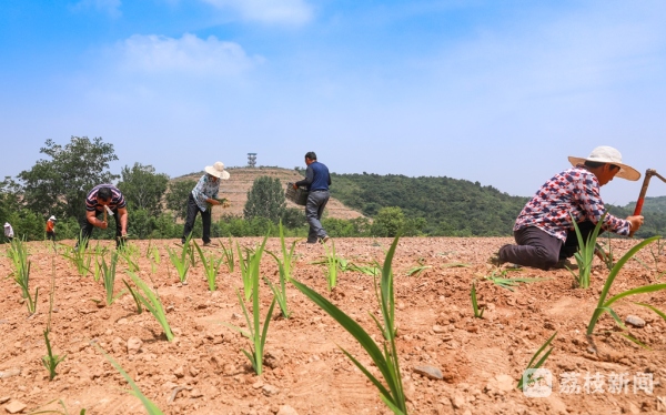 5月27日,在句容茅山风景区马埂村的中草药种植基地,几名村民正在进行中药材种苗的种植,挖窝插苗、培土浇水,现场一派火热的景象。现场负责人介绍,这些叫做“射干”的中药材种苗都是江苏农林职业技术学院特地为他们精心培育的。江苏农林职业技术学院生物工程技术中心助理研究员史俊说:“今天我们主要带来了5000株‘射干’,我们地里还有很多种种苗,包括一些句容的最地道的,比如说茅苍术(zhu二声)、黄精等这些中药材种苗,只要我们村里有需要,我们随时可以提供。”