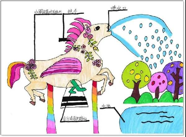 “小小民生观察员”周璇琳设计的儿童踩踏式喷水木马