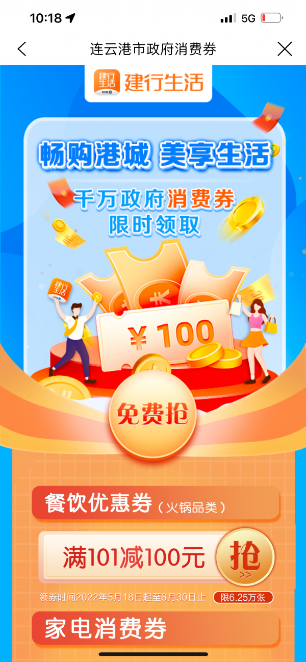 6月8日上午8时起,将进行第二期火锅消费券滚动发放,市民可通过“建行生活”APP进行领取。