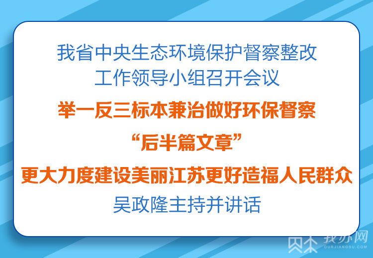 会议强调,要举一反三、标本兼治,推进督察反馈问题整改到位。要根据督察报告,按照《中央生态环境保护督察整改工作办法》要求,细化完善整改方案,明确时间表、路线图、任务书,逐项对照检查,一一验收销号,整改过程中要坚持“当下改”和“长久立”相结合,力戒形式主义、官僚主义,决不允许敷衍整改、弄虚作假,决不允许“一刀切”“运动式”,确保整改取得扎实成效。要以督察整改为契机,坚持问题导向、目标导向、结果导向,深入打好蓝天、碧水、净土保卫战,持续推进长江大保护、太湖流域综合治理、大运河绿色生态廊道建设以及危险废物全生命周期管理等各项工作,统筹抓好中央生态环境保护督察反馈问题、全国人大常委会执法检查交办问题、长江经济带国家警示片披露问题和我省自查问题整改,着力解决群众反映强烈的突出问题,以高水平保护推动高质量发展、创造高品质生活,更好造福人民群众。