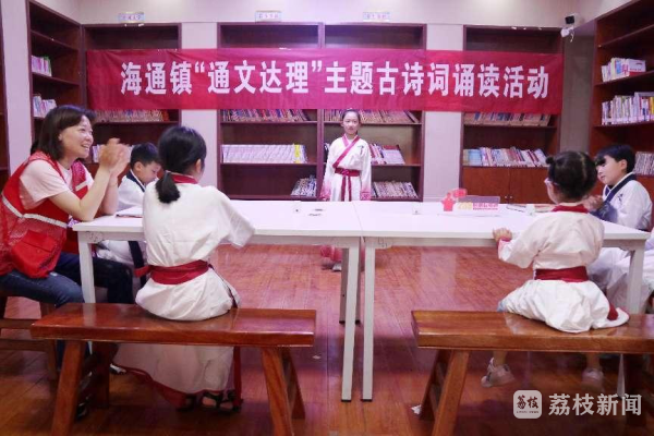 着汉服、颂楚辞,与屈原来上一次穿越时空的对话。5月29日下午,在射阳县海通镇新时代文明实践所,志愿者们组织开展“儿童节遇上端午节”主题阅读活动,小朋友们身着传统服饰、诵读着屈原的《九歌·湘夫人》闪亮登场,或高亢激昂,或满怀深情,展华夏汉服之美,享经典诗词之妙,徜徉其中,共享阅读之韵。