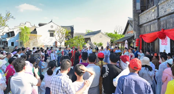 在大洋湾,包粽子、摇摇桥大战、投壶……让人们甩掉压力、忘掉烦恼。唐渎里的《只此青绿》《相和歌》演艺节目,可谓余音绕梁。在东台西溪,《寻仙缘》《范仲淹》好戏连台,更有《钟山》主编、文学博士贾梦玮在“西溪讲堂”开讲文化大课。中华海棠园,全新打造的节庆科技演艺IP《我们·行走盐城》,在璀璨星空秀起来。荷兰花海,快闪、旗袍秀、国风舞蹈,人们零距离感受文化之美。宗祠高“粽”、河灯祈福、宋风演艺等,游客们在大纵湖旅游度假区体验不一样的风景。