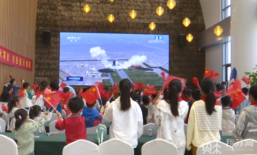 “五、四、三、二、一,点火!”6月5日上午10:44分,在射阳县日月畅想主题馆,同学们通过直播见证了神舟十四号载人飞船的成功发射,现场爆发出经久不息的掌声和欢呼声,“航天梦”在孩子们心中悄然生根发芽。“在火箭成功发射的那一刻,我感到激动与自豪,这是中国人民的骄傲!所以我以后也要成为一名航天员,探索神秘的浩瀚星空!”刚刚看完直播的胥鹤轩激动的告诉记者。