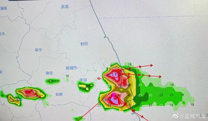 受东北冷涡影响,今日午后盐城、南通、南京、扬州、泰州、镇江等地出现强对流天气,其中盐城、镇江局地出现冰雹,全省最大风力达29.8m/s(南通如东丰利镇,11级,06日17时07分)。