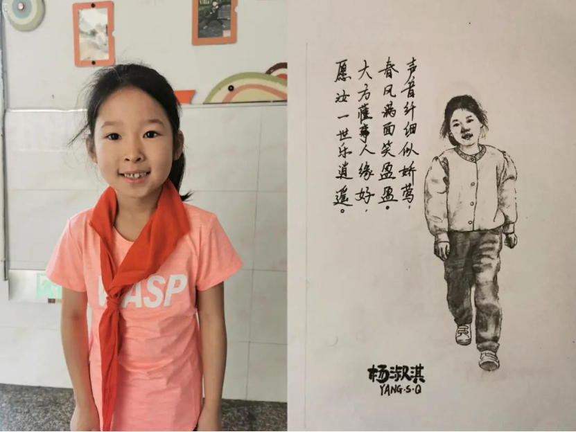 该校校长刘莉表示,小小的评语里,承载着学生成长的轨迹,有称赞,有表扬,亦有期待。每一个人物肖像画中,都传达着老师对孩子们浓浓的爱。