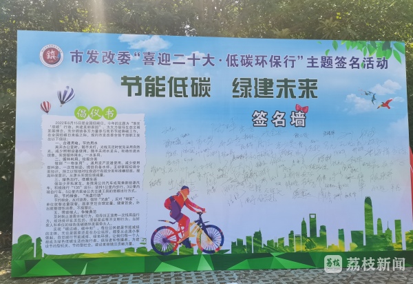 “低碳不是一种能力,而是一种态度!”出发前,一百多名党员干部宣读了低碳日倡议书,倡导大家共同担当低碳生活的引领者、宣传者、实践者,为建设天蓝水清、环境和谐的生活环境而努力。