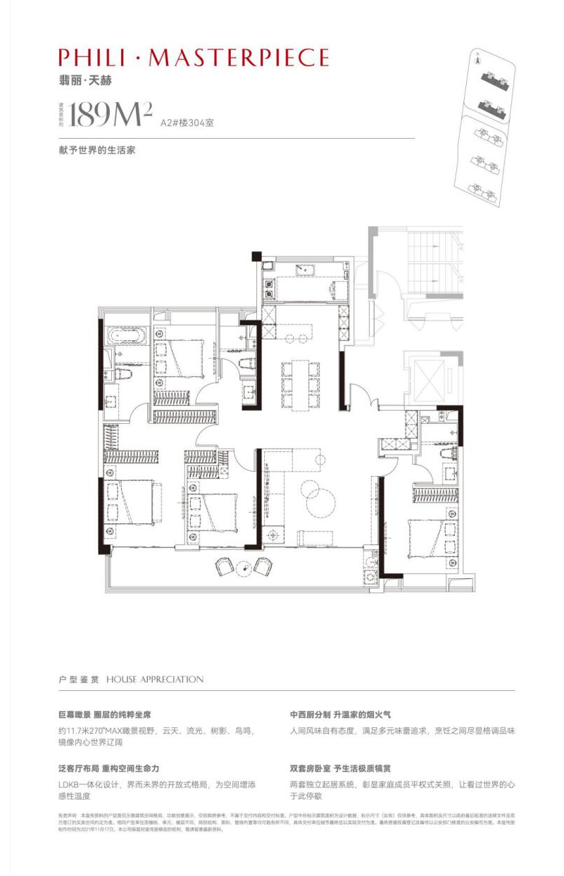 本次加推的189户型更是王牌品质,对于市面上大多数的豪宅来说,结合面积与档次,细细想来,翡丽铂湾似乎在整个主城都没有对手,它以多维度考虑,用前所未有的尺度,打造豪宅才能做到的无束缚感空间。