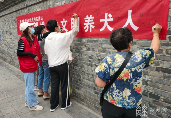 活动现场,志愿者们通过社区网格群向居民推送文明养犬活动通知和电子版倡议书,社区工作人员和民警深入辖区,向居民发放《致养犬居民的一封信》和《遵守社会公德 依法文明养犬》手册,对居民提出的养犬问题进行了详细解答,宣传了文明养犬的责任与义务,同时为养犬居民赠送牵狗绳,号召居民定期为爱犬注射疫苗,携犬出行时要拴好并注意保持环境卫生,对爱犬进行圈养,不带爱犬进入人群密集区域。随后,居民在“牵紧文明绳 做文明养犬人”横幅上签上文明养犬承诺,从自己做起,做文明养犬人。